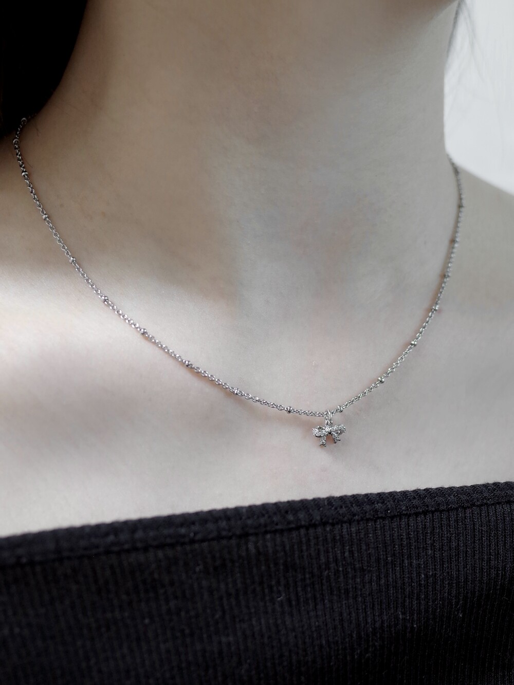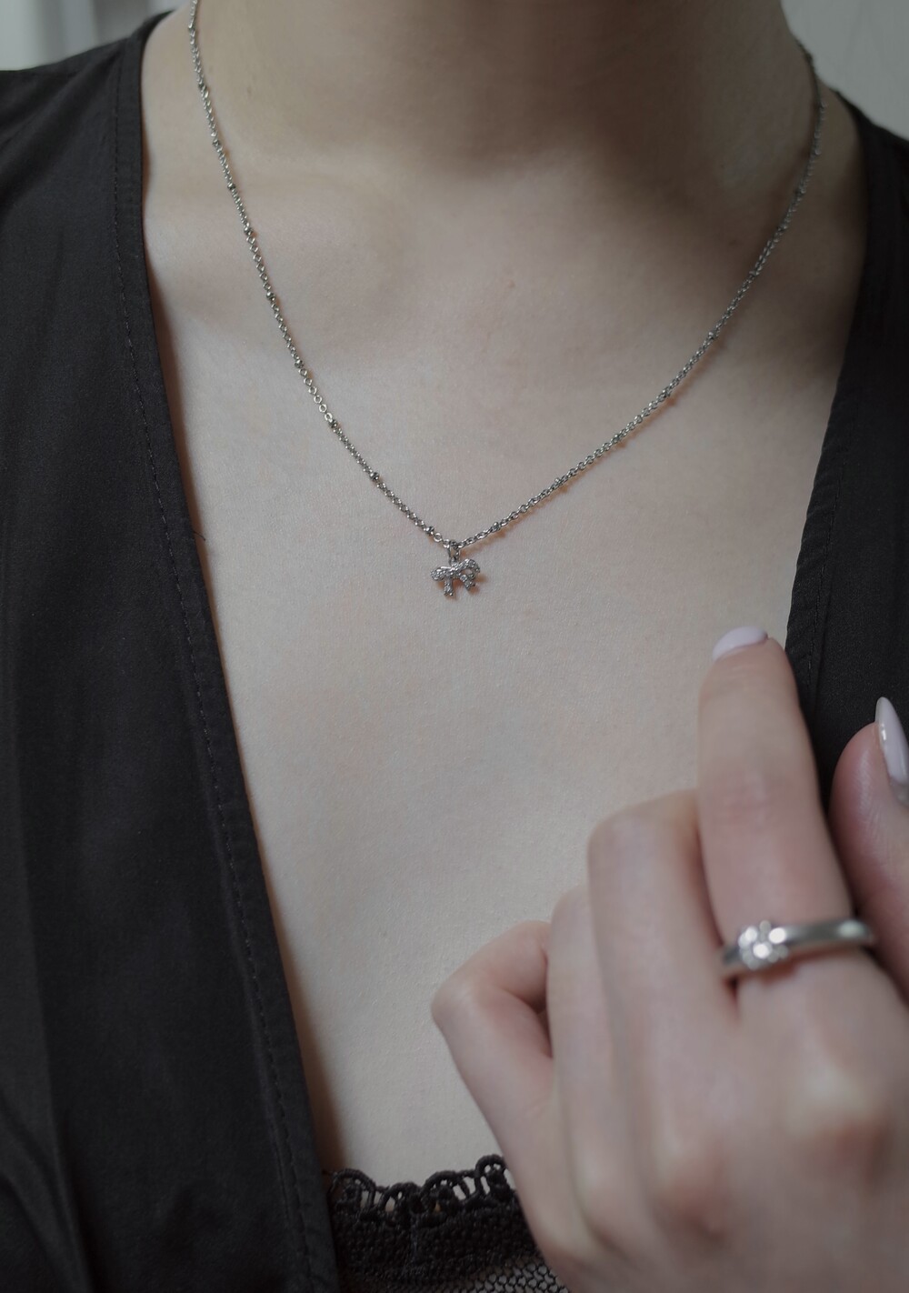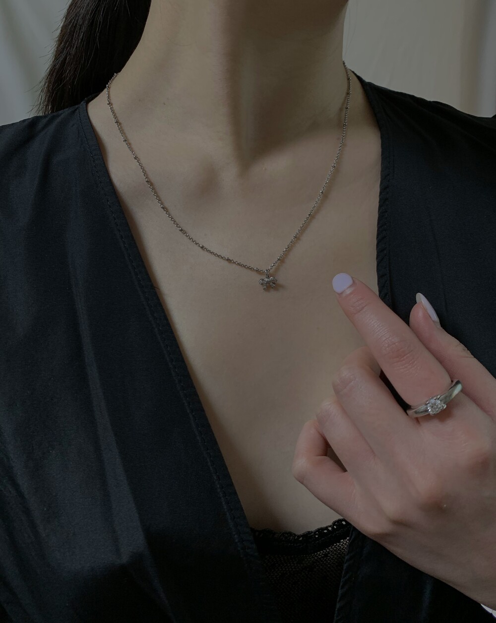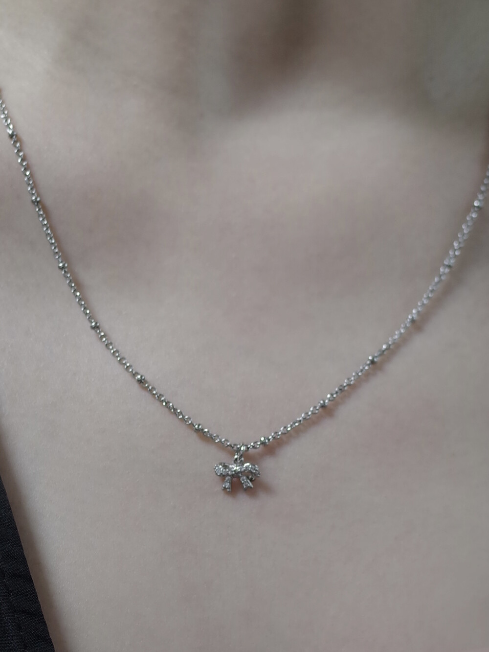 작은 리본팬던트를 섬세하게 채운 파베장식이 돋보입니다.