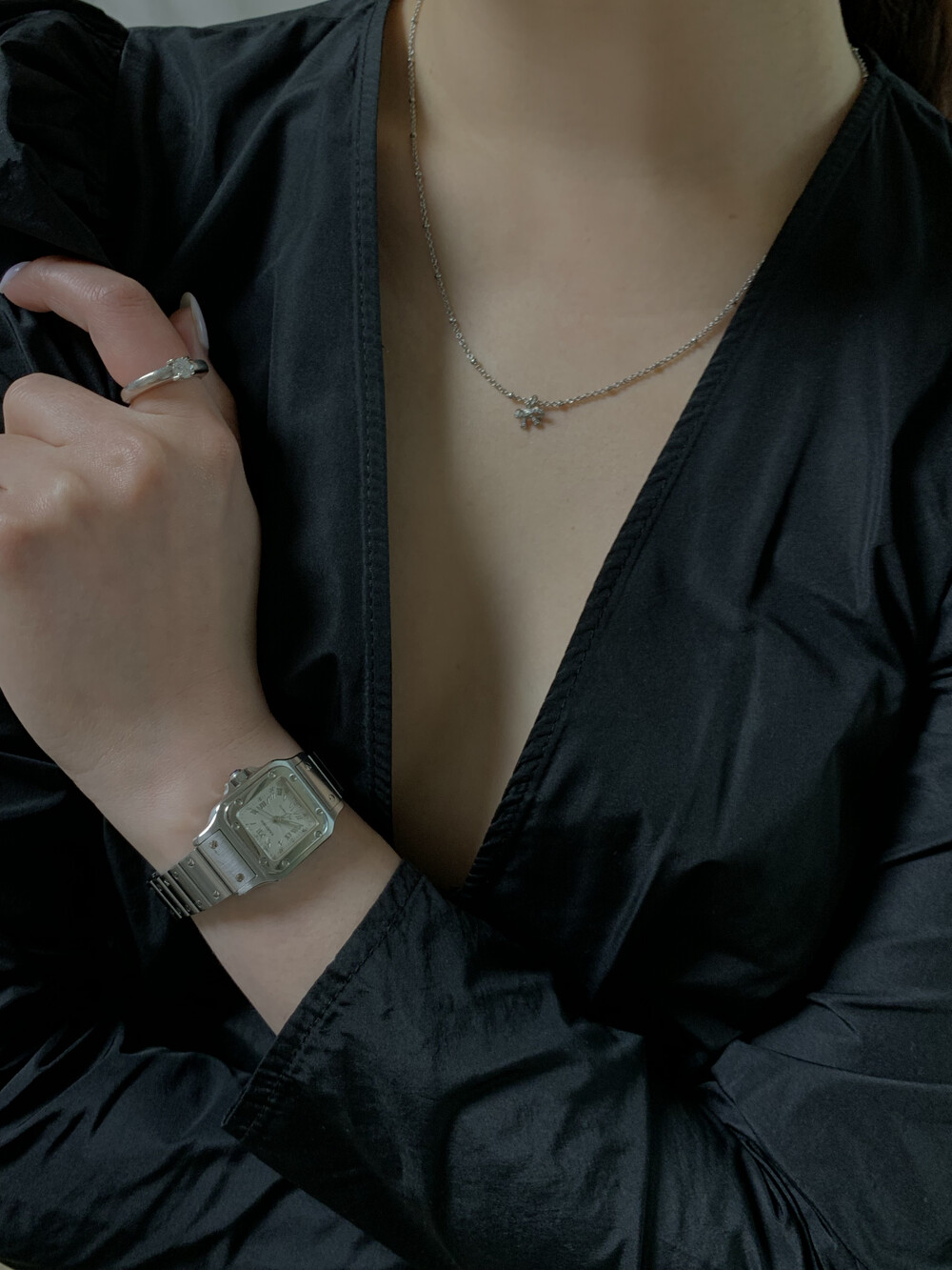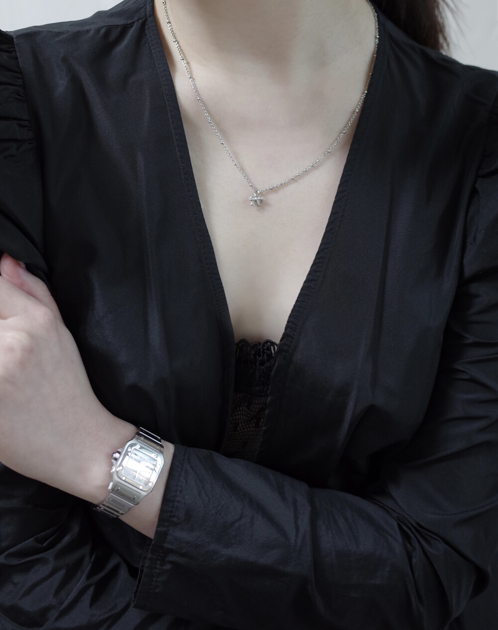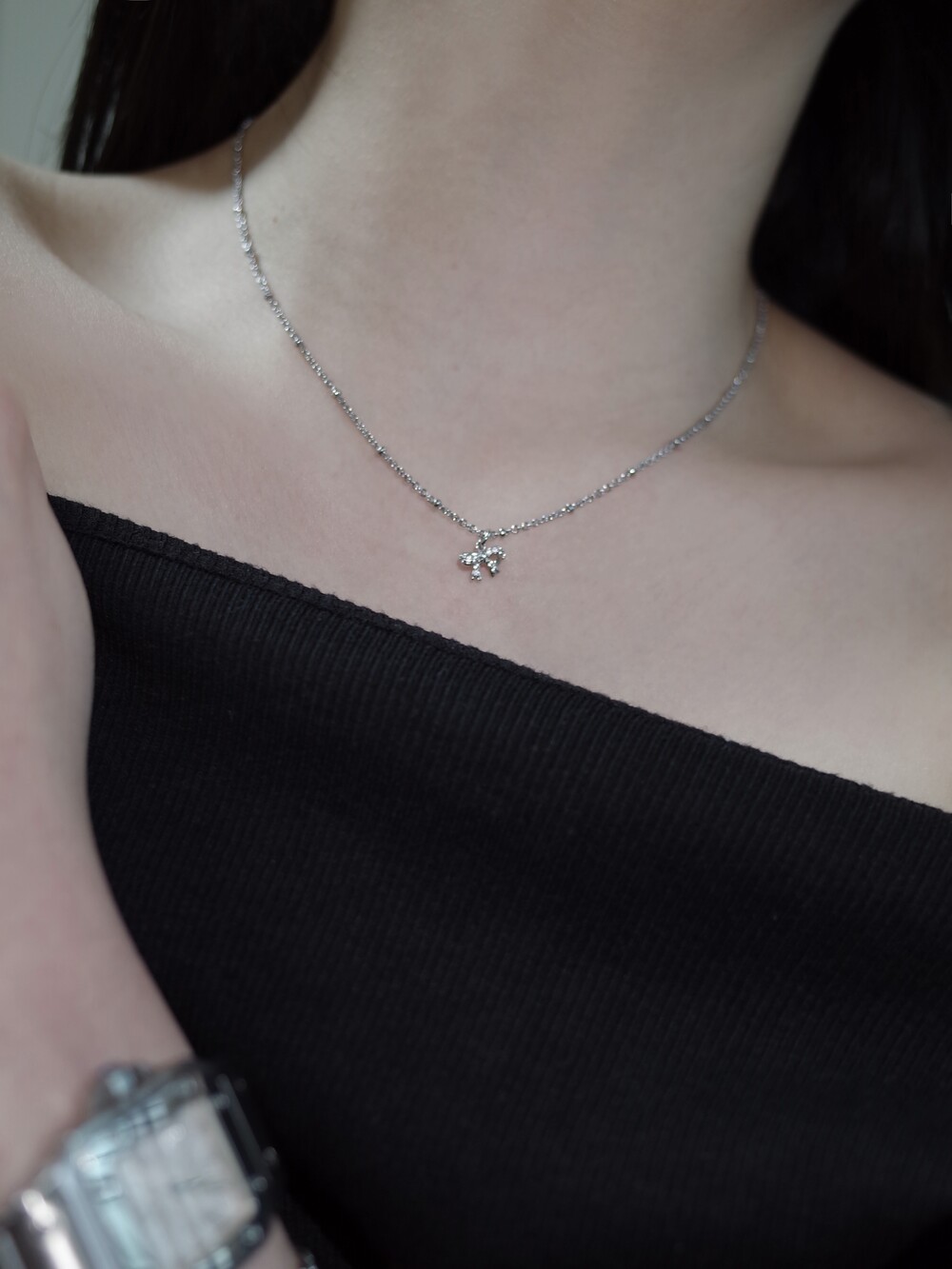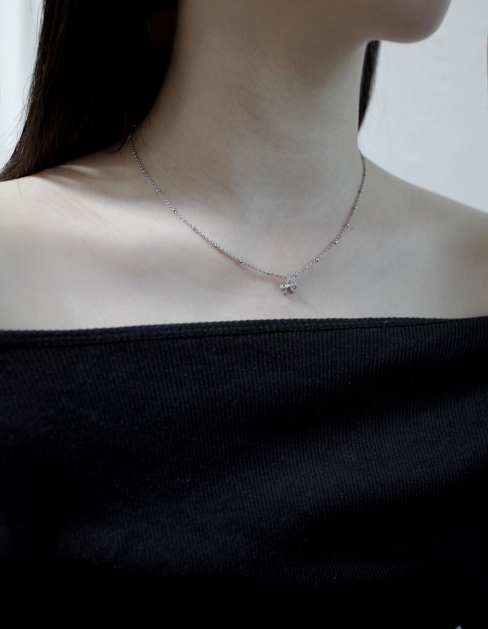 작은 리본팬던트를 섬세하게 채운 파베장식이 돋보입니다.