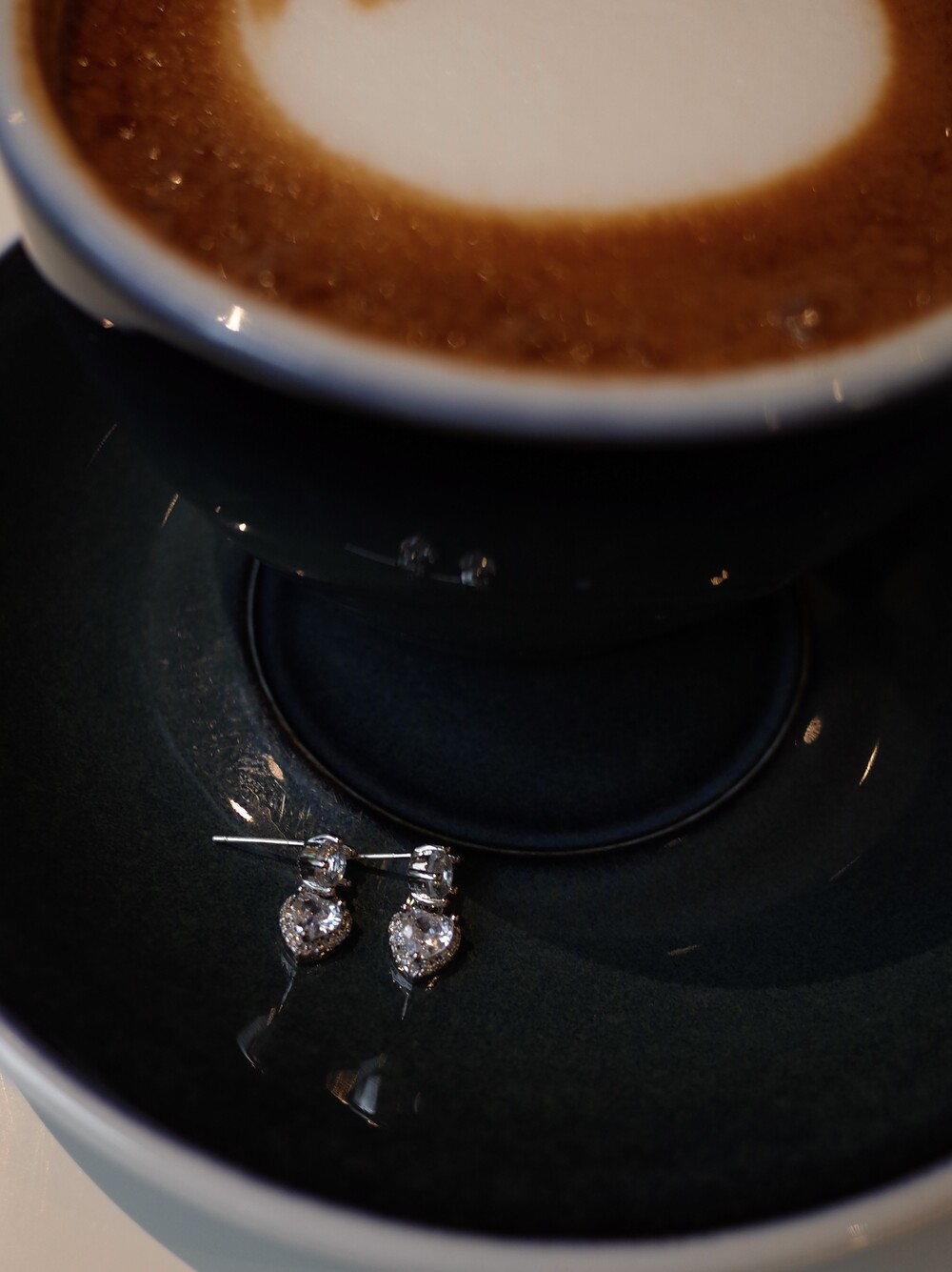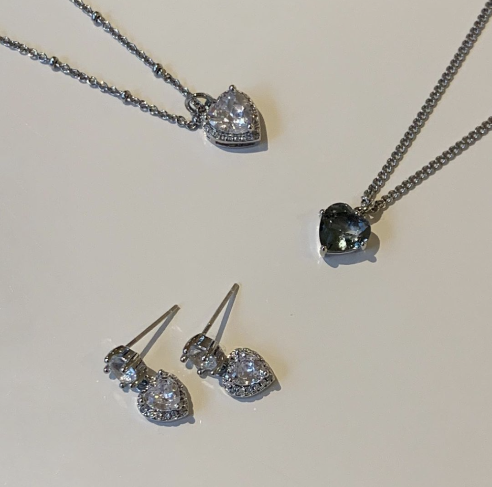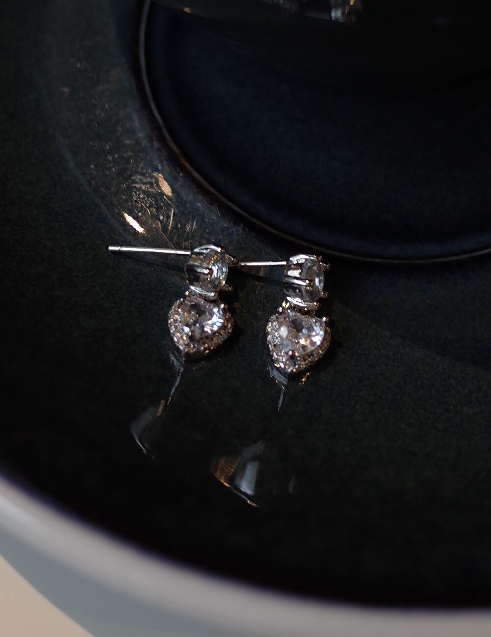 깊이 반짝이는 화이트 스톤 팬던트가 피부를 환하게 비추어줍니다.