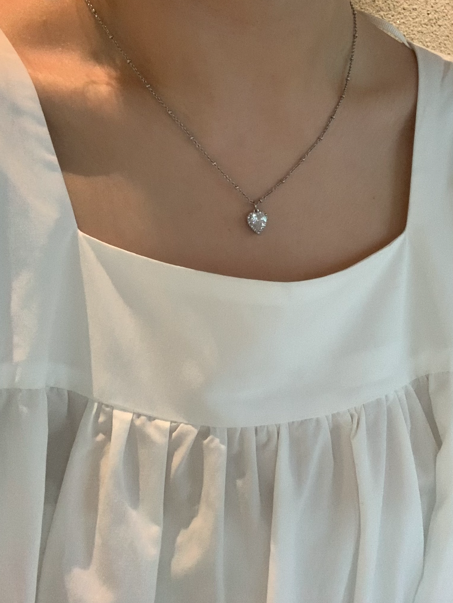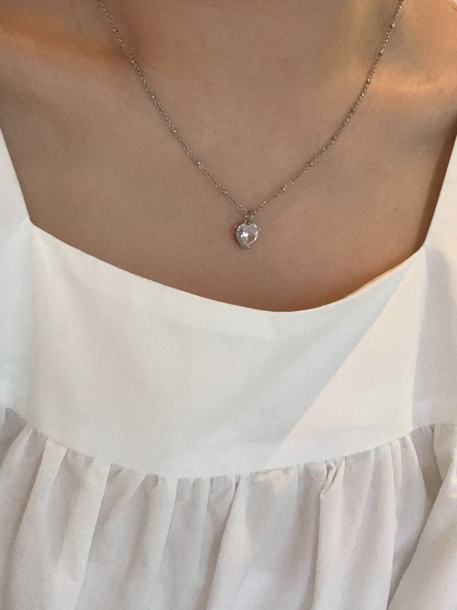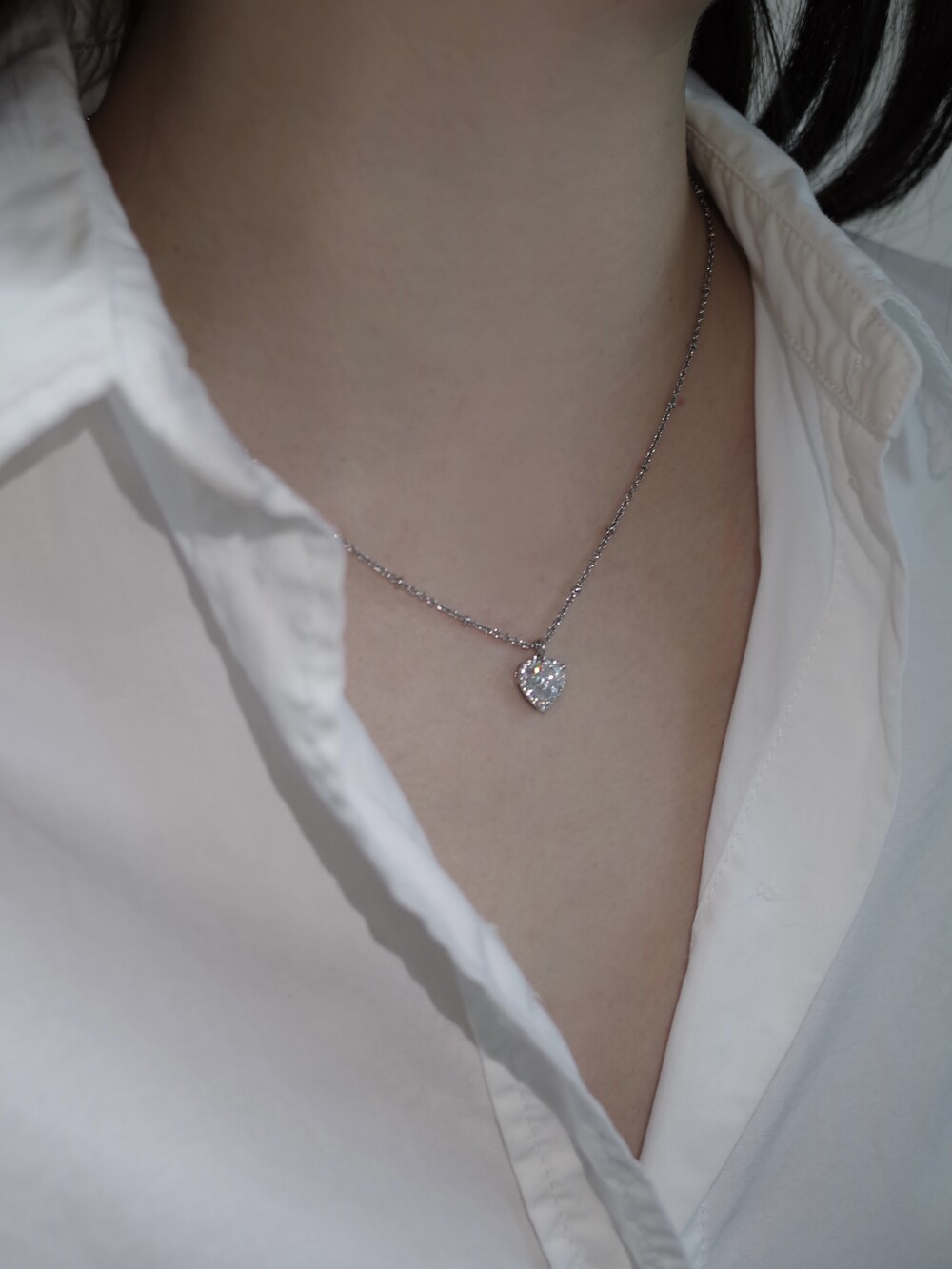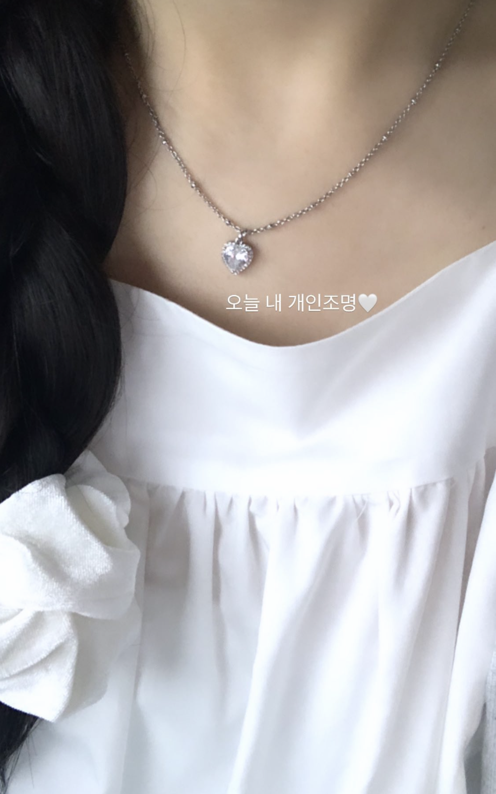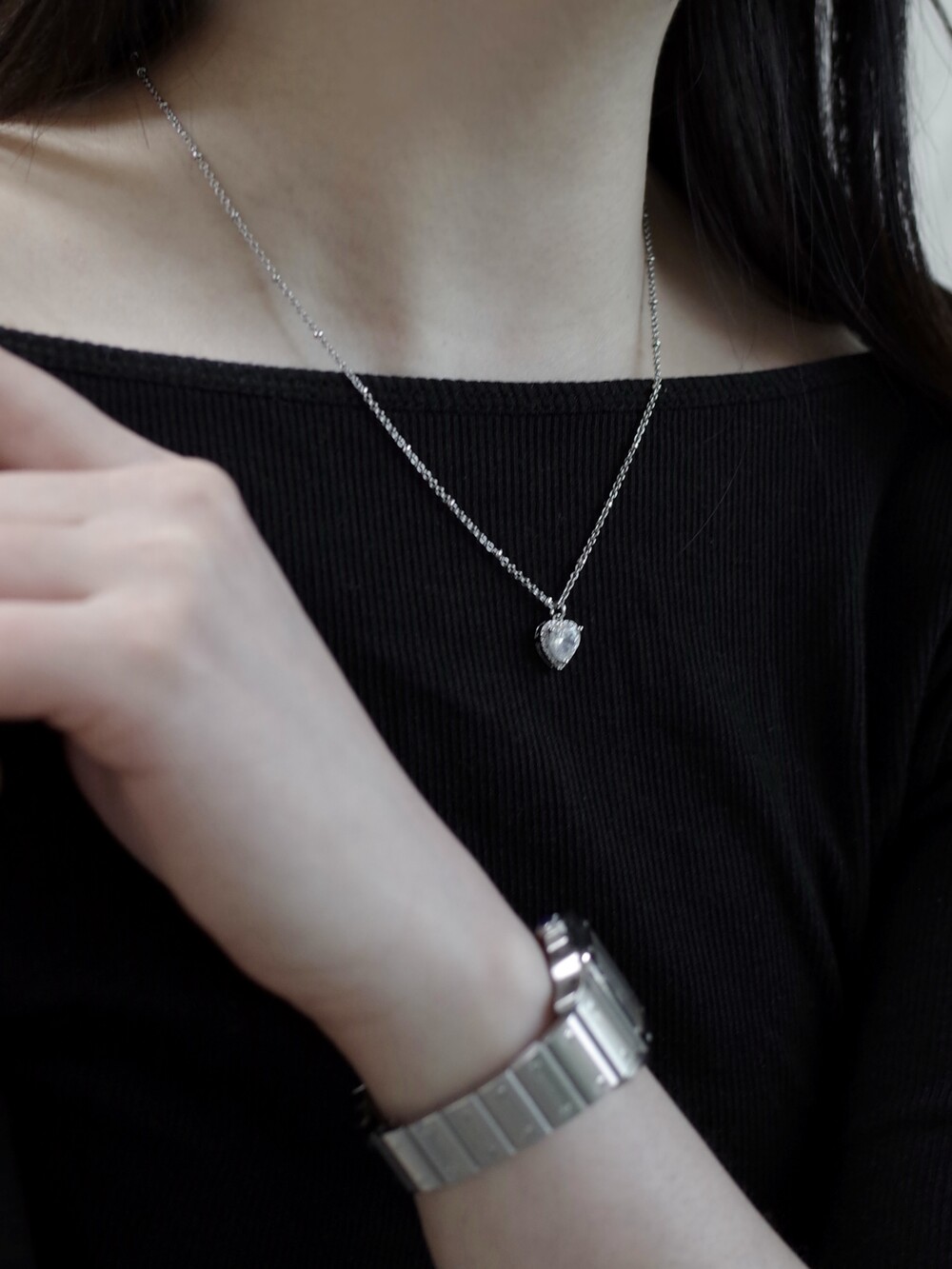 깊이 반짝이는 화이트 스톤 팬던트가 피부를 환하게 비추어줍니다.