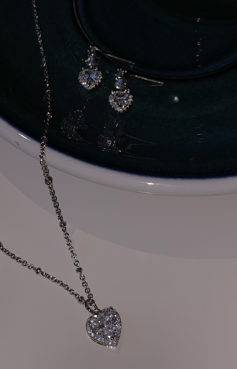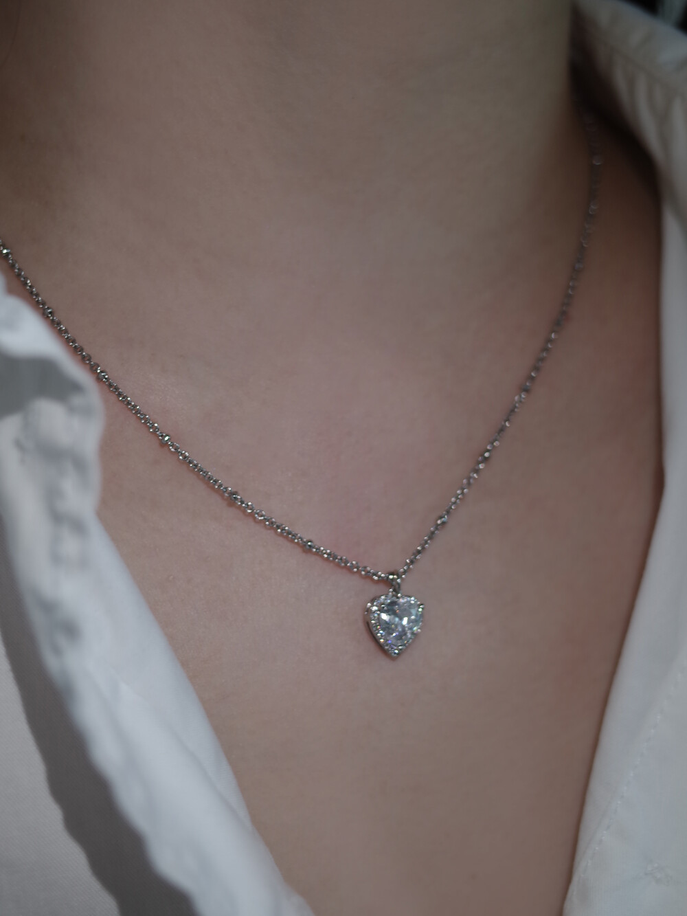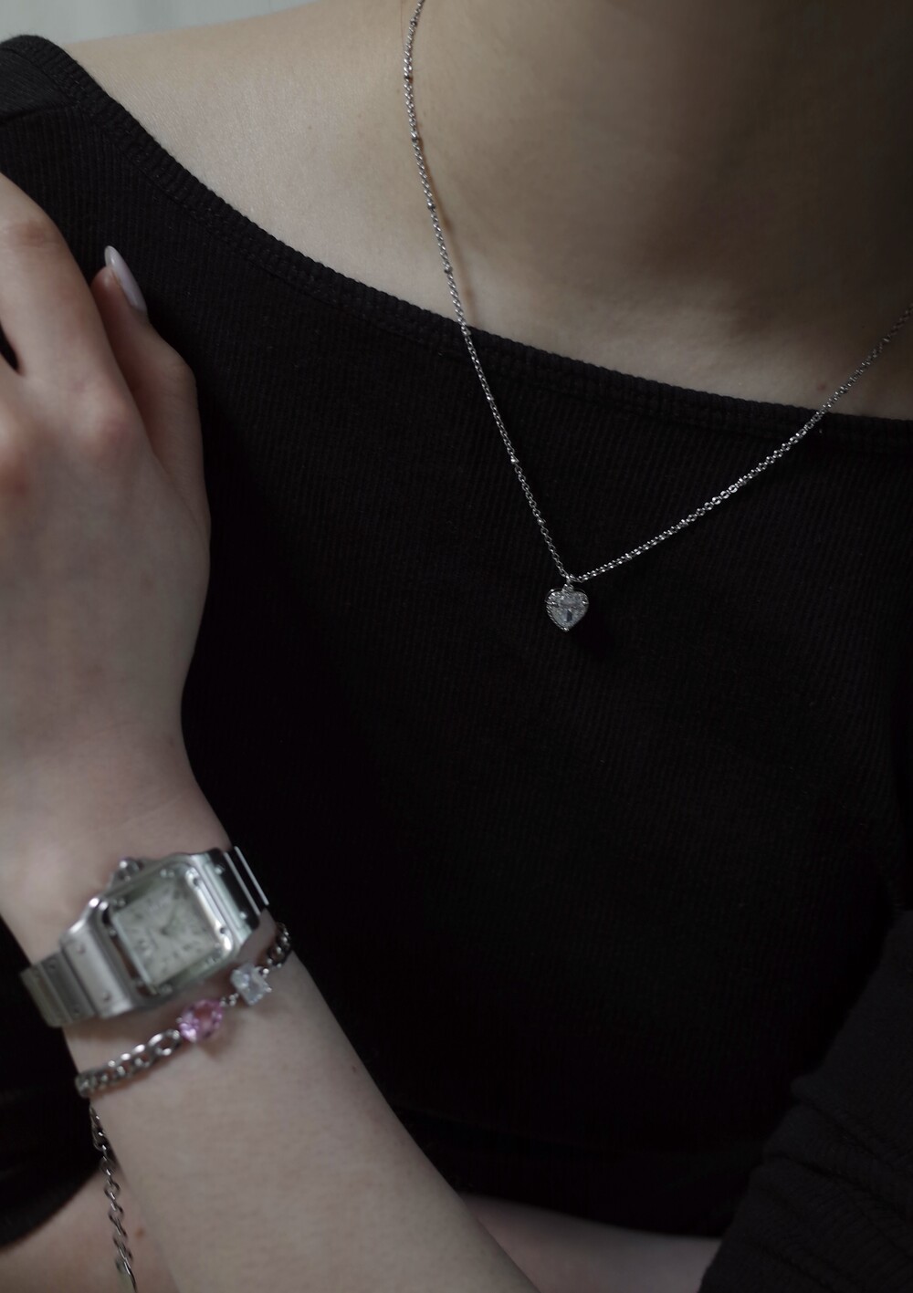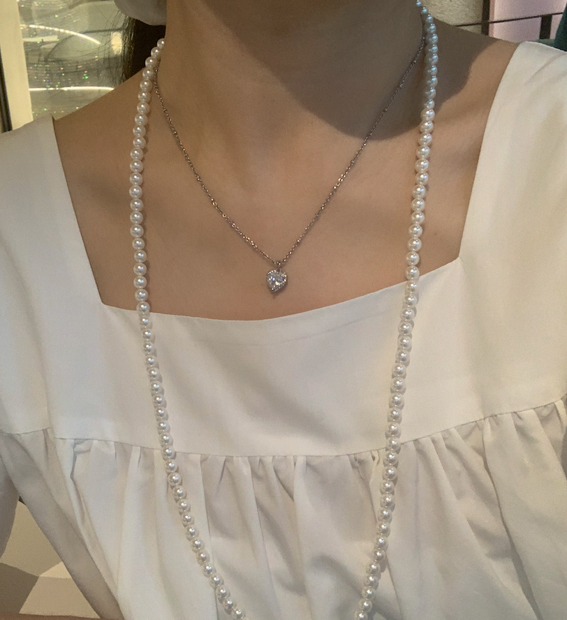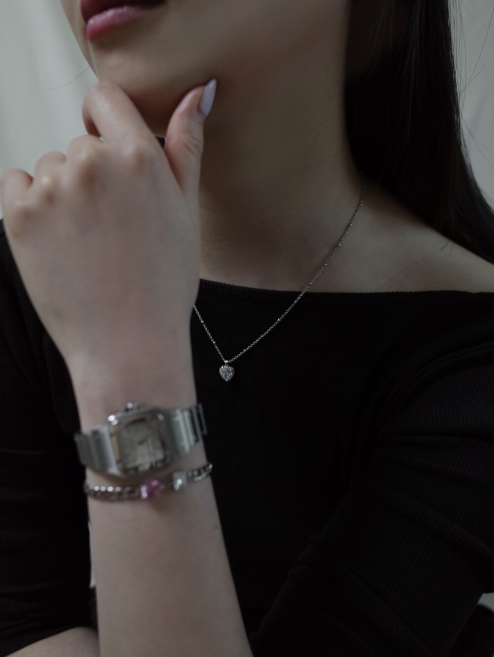 깊이 반짝이는 화이트 스톤 팬던트가 피부를 환하게 비추어줍니다.