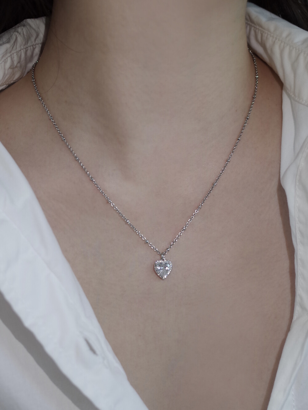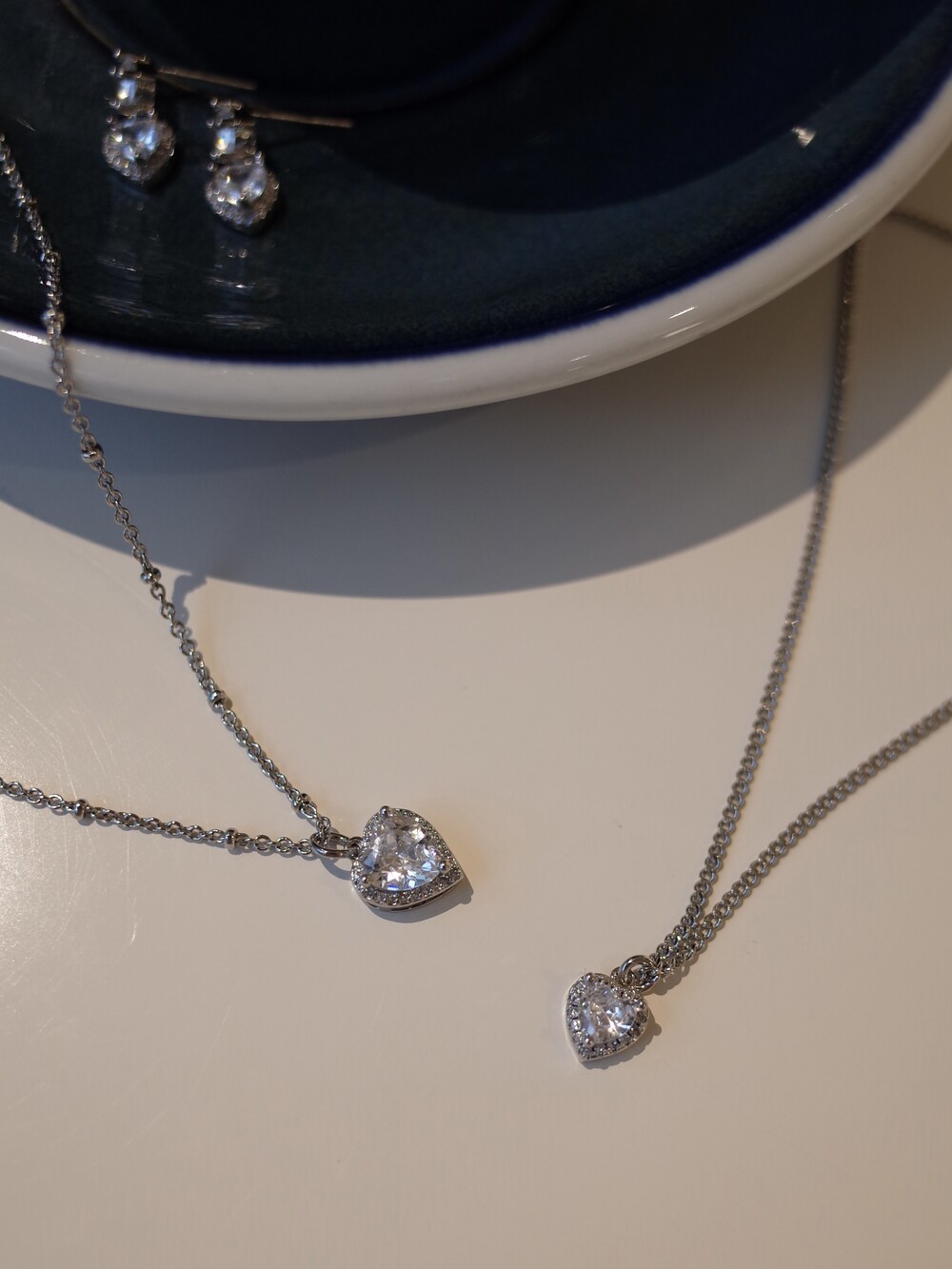 섬세한 파베 장식이 돋보이며 우아한 백금 도금으로 마무리한 고급스러운 네클리스입니다.