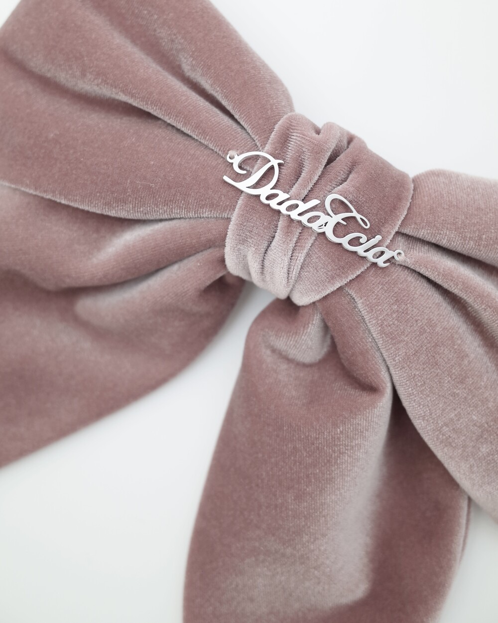 은은하게 반짝이는 벨벳소재와 화이트골드 도금의 로고장식으로 더욱 특별한 리본입니다. 내부 스펀지작업을 더하여 볼륨감있게 유지되도록 완성되었습니다.