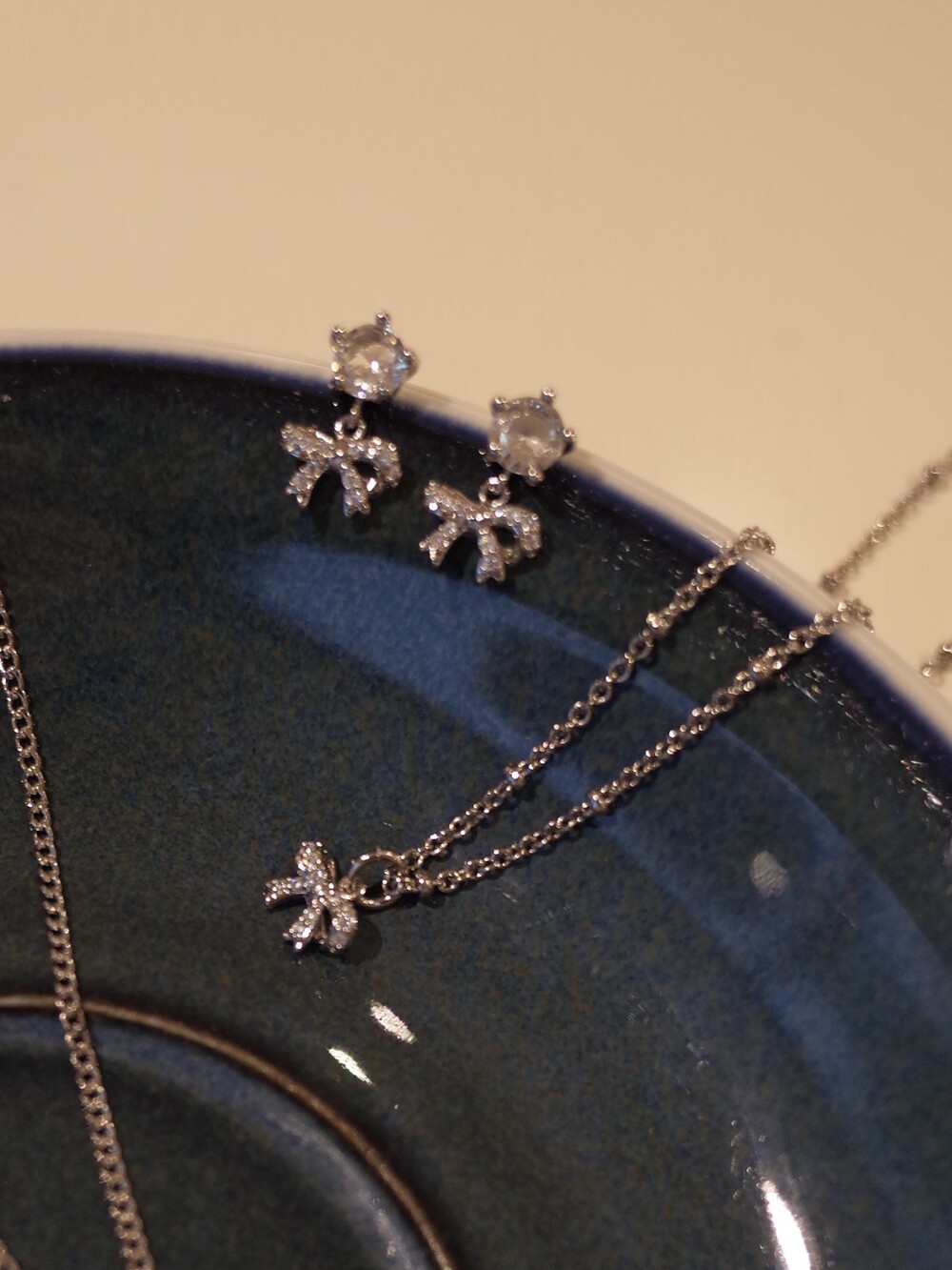 작은 리본팬던트를 섬세하게 채운 파베장식이 돋보입니다.